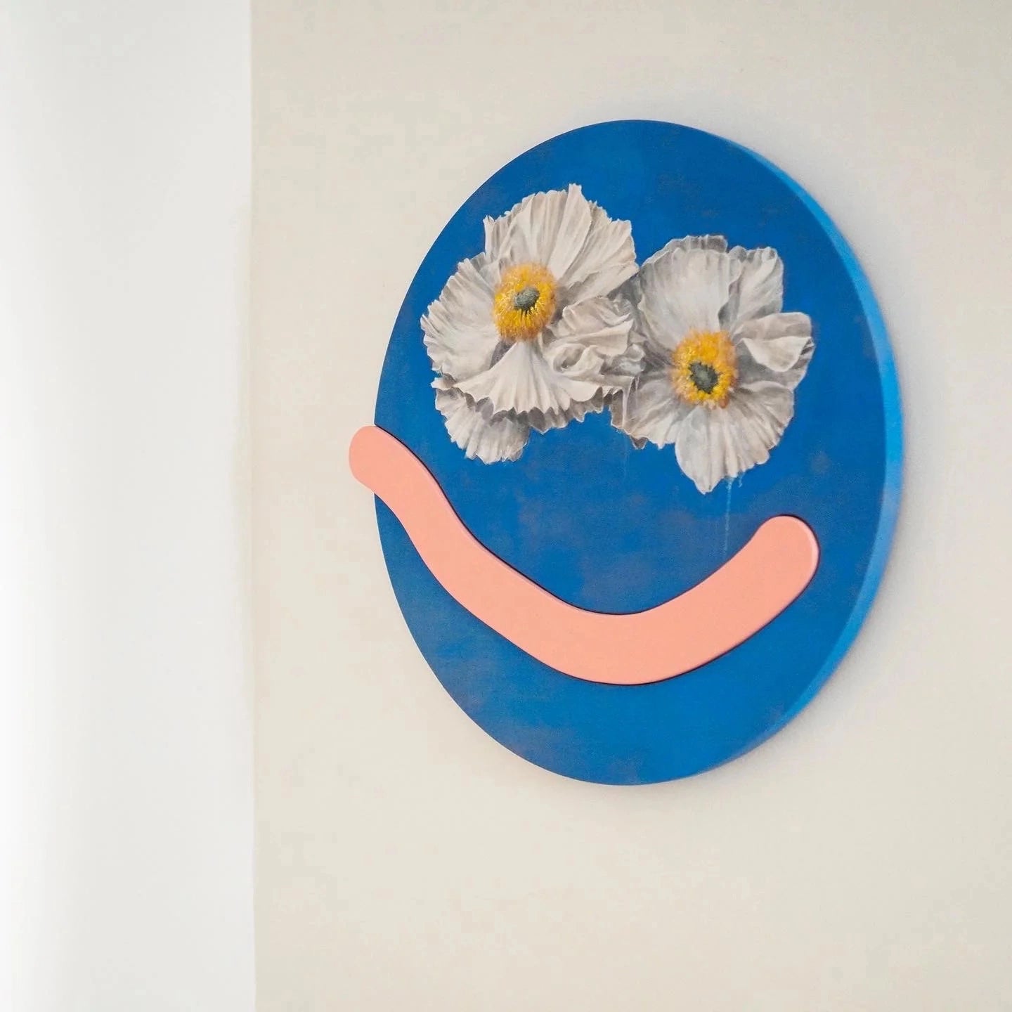 The Sculpture: An integrated, hand-built shaped canvas (Positive Gesture #45) that creates a physical relief and structural depth on the circular surface