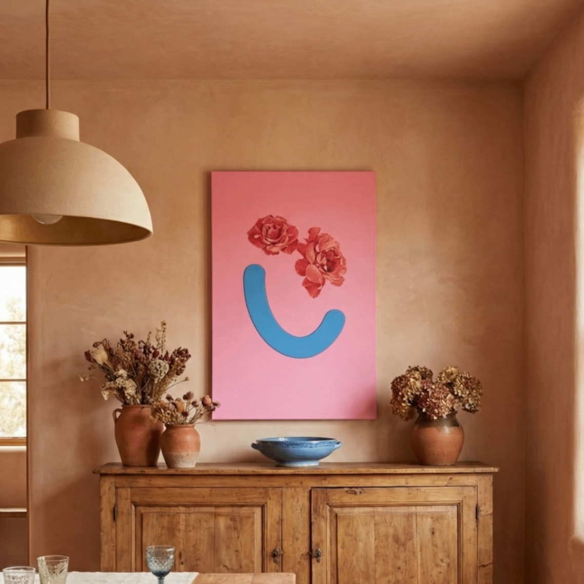 Bring vibrant joy to any room with this colourful Original Print of happy roses!